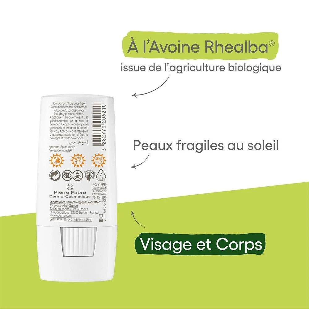 A-DERMA PROTECT Stick Invisibile Alta Protezione SPF 50+ protegge dai raggi UVB e UVA corti e lunghi.