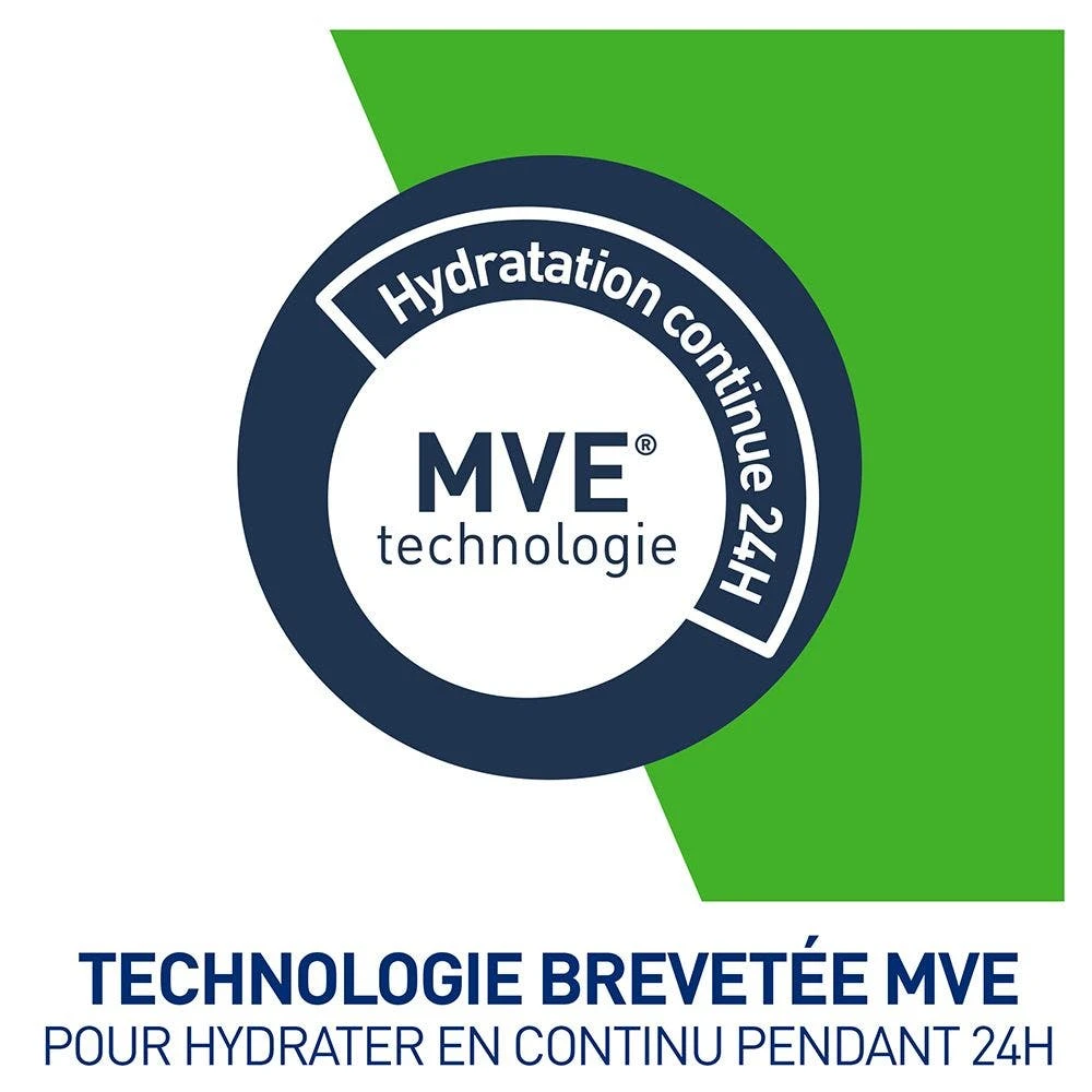 - garantisce un’idratazione di lunga durata per 24 ore grazie alla tecnologia brevettata MVE, che permette una diffusione prolungata dei principi attivi, e alla sua formula arricchita con acido ialuronico, che aiuta a trattenere l’acqua nella pelle e a mantenerla idratata;