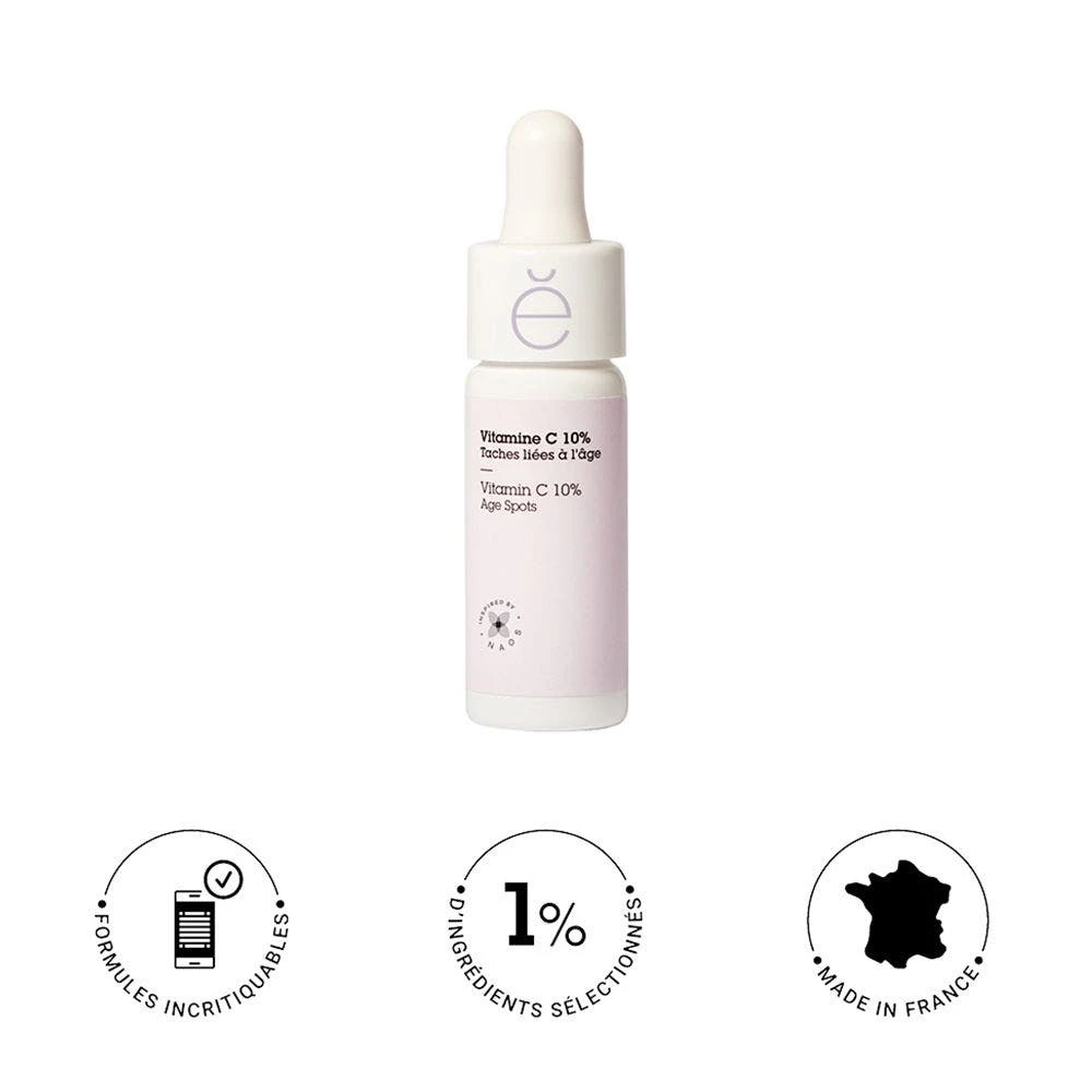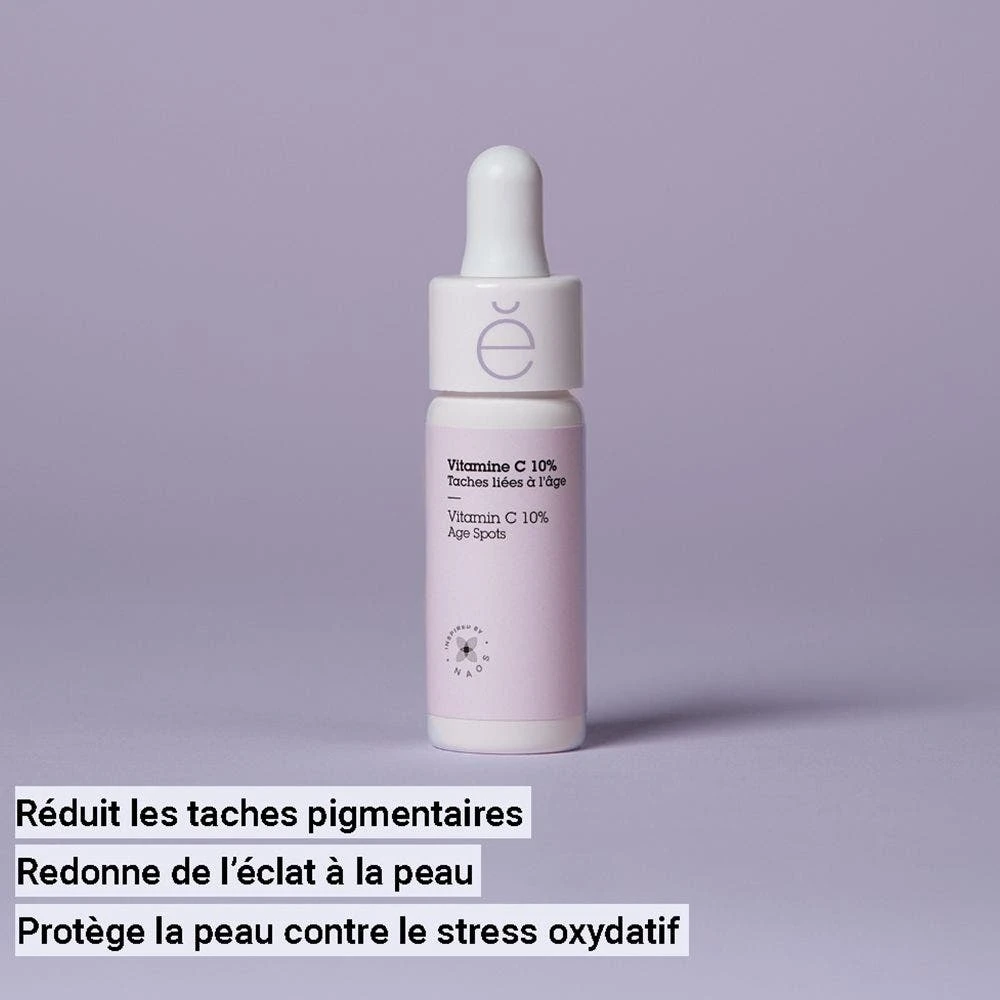 - Riduce le macchie dell’età: la Vitamina C pura agisce sulla sintesi della melanina per ridurre visibilmente le macchie dell’età e uniformare il tono della pelle.